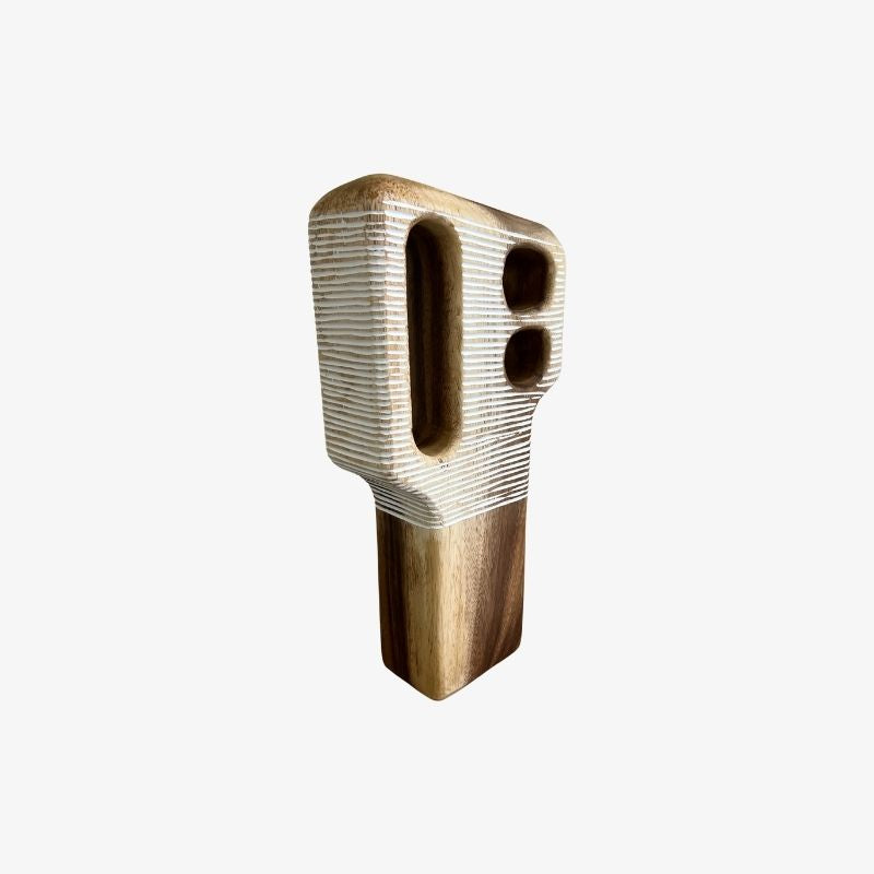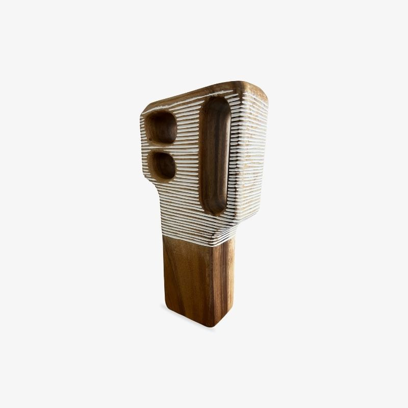 Hand-carved wood totem that brings calm texture and quiet character to your space, a poetic nod to deco wabi sabi