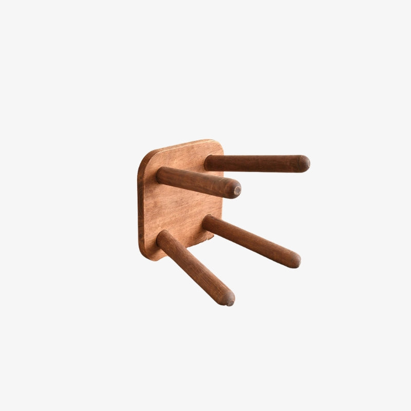 This compact seat shows honest grain, rounded corners and sturdy splayed legs that feel steady underfoot. It brings quiet character to a living room, entryway or tea corner, where natural texture and soft proportions create balance. Use it as a perch, a low side table or a display for ceramics in a serene nook, the spirit of a minimalist step stool crafted for simple daily rituals.