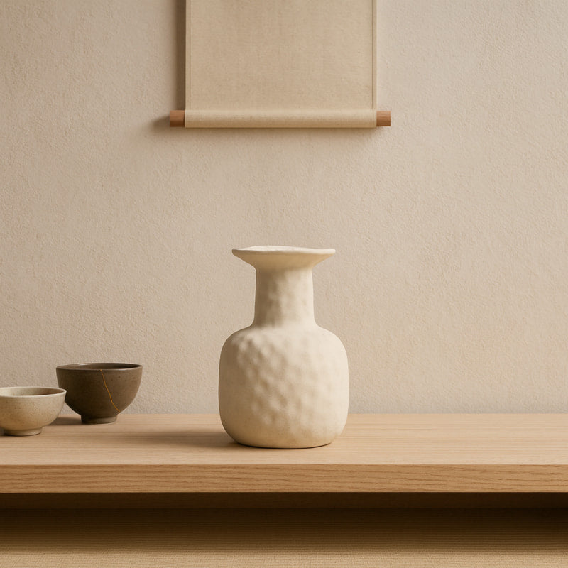 Let quiet texture ground your room with a Vase wabi sabi style shaped by hand