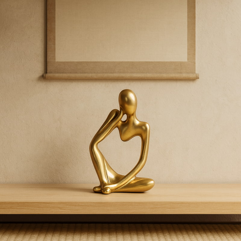 This hand-cast form traces a relaxed pose with smooth curves and open space, guiding the eye to stillness. Style it on a console with linen and pale wood as a contemplative thinking man statue that honors Japanese simplicity and shibumi restraint.